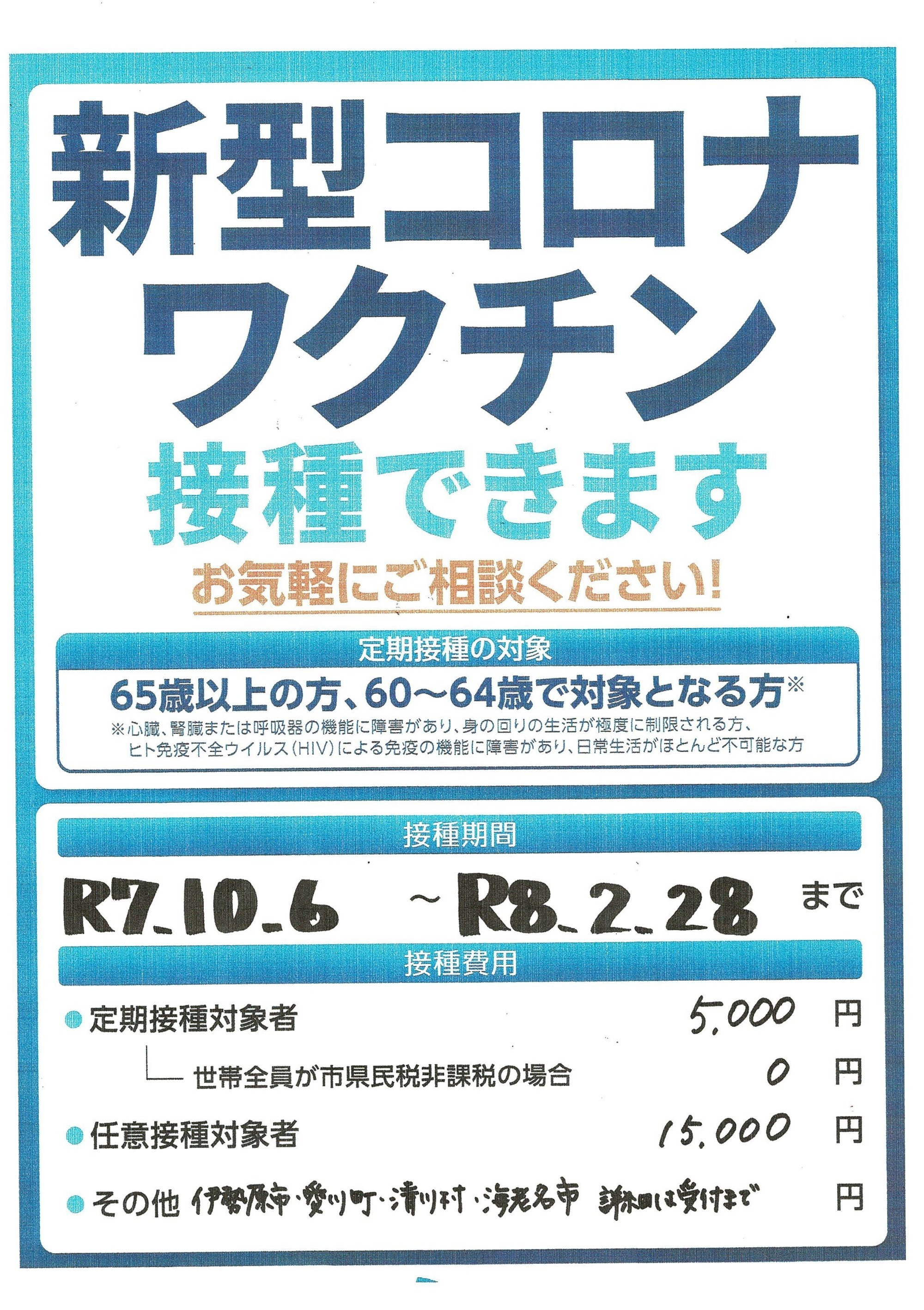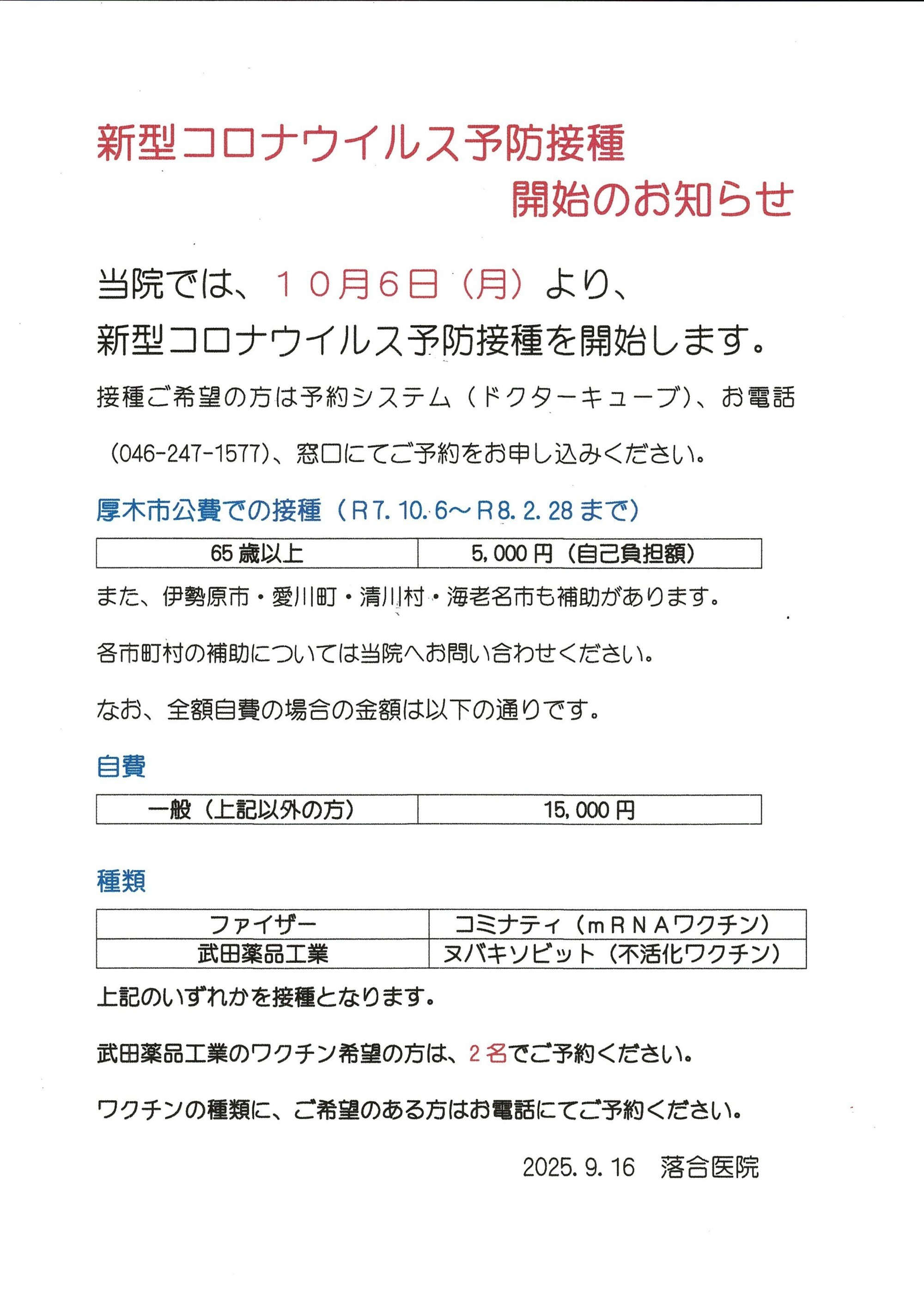 ■新型コロナウイルス予防接種開始のお知らせ(2025/9/17)